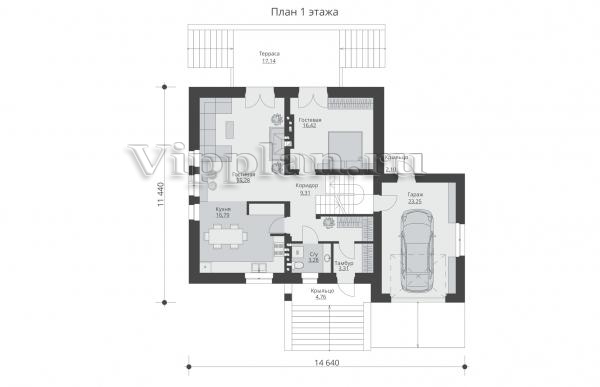 | Размеры дома: | 14.64м×11.44м |
