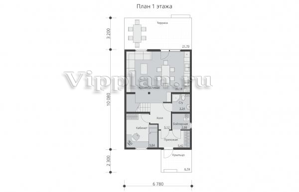 | Размеры дома: | 6.78м×10.08м |