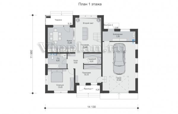 | Размеры дома: | 11.98м×14.13м |